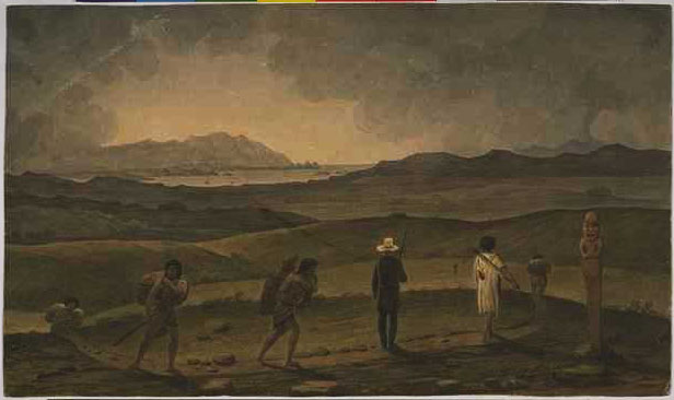 Clearly bored with Sydney society, and frustrated in his attempts to obtain a land grant, Earle departed finally on 12 October 1828 bound for India. He travelled to the Pacific and Asia before disembarking at Madras where he reputedly `acquired both fame and money; and during his short stay there executed the original drawings of that Presidency, which have been since copied and exhibited as a Panorama, by Messrs. Daniell and Parris'. Earle's health soon declined, however, and he was forced to take another two ships back to England. Upon arrival, he wasted no time in capitalising on his experiences abroad and published an eight-part series of Sydney views (1830) as well as an illustrated account of New Zealand and Tristan da Cunha (1832) and a set of New Zealand views (1838). Source: National Library of Australia http://www.nla.gov.au/exhibitions/earle/chrono.html The London-born travel artist, Augustus Earle (1793-1838), left England in 1818 bound for the USA. This was the first stage of a remarkable, round-the-world journey that took him to South America, Tristan da Cunha, New South Wales, New Zealand, the Pacific, Asia, India, Mauritius and St Helena before returning home in late 1829. Most of his predecessors who worked outside Europe had been employed on voyages of exploration or worked abroad for wealthy, often aristocratic patrons. Earle, however, operated quite independently and was fortunate to be able to combine his wanderlust with an ability to earn a living through art. The body of work he produced now comprises what is arguably a unique record documenting the effects of European contact and colonisation during the early nineteenth century. The fifty watercolours selected for this exhibition have been drawn from a group of 161 works that was offered for sale at Sotheby & Co., London in May 1926 by the grandson of Earle's half-brother. Some years later, the works came into the possession of the New Zealand-born art dealer and collection, Sir Rex Nan Kivell (1898-1977), and together with the rest of his collection, were acquired for the National Library of Australia in several stages between the 1940s and 1970s, initially by purchase and later by gift. A major oil painting by Earle, as well as a group of prints, publications and other related material, have also been included in the exhibition. |