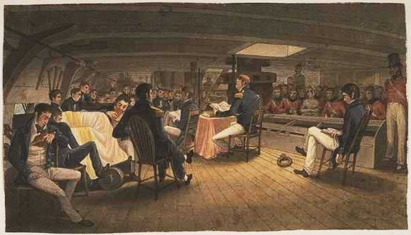 Divine service on board a British frigate (1820) 17. I x 30.5 NK12/130 T167
