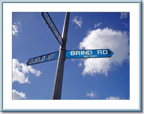 1. "Brind Road" sign in Russell, Bay of Islands, New Zealand.