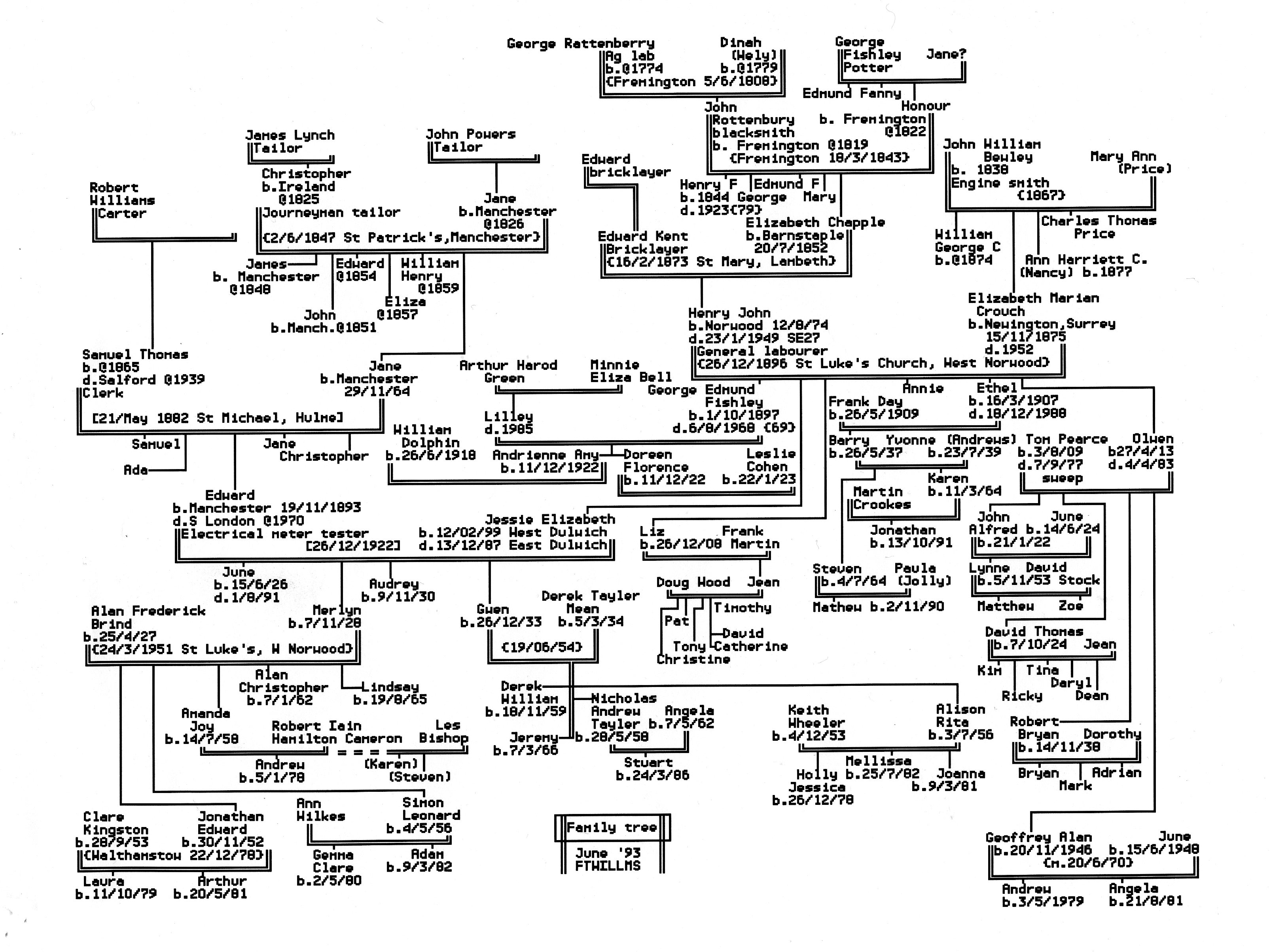 The wedding of Samuel Thomas Williams, who was born in Liverpool, and Jane Lynch, aged 17, took place at St Michael, Hulme, a Church of England Parish Church on May 21, 1882. Samuel gave his age as 19 (though he was probably 16 or 17). He said he worked as a Clerk. His witness was James Williams (brother, uncle?) and he said his father Robert Williams, a carter, was dead. Nine years later the couple were living in a two up, two down house at 29 Arthur Street, Hulme, with children Christopher (6), James (4) and Ada (1). Samuel was working as Clerk in the Dyeworks and according to the census he was younger than his wife. He was 25 and she 26. Poor little James was suffering from 'Water on Brain', according to the 1891 census. Edward Williams, my grandfather, was born on November 19, 1893. The family were still living at 29 Arthur Street but Samuel Thomas may have gone up in the world. At any rate he had a fancier job title. He was described as a 'Commercial Clerk'. Jane Williams, who according to family legend had bright red hair and spoke with a broad Irish accent, probably died in the early 1930s aged about 65. Edward Williams my grandfather, was a Meter repair tester. His health was never very good after the First World War. He had a struggle keeping himself on his feet to go to work. |