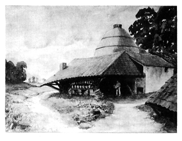 | The old FISHLEY POTTERY, taken from a painting. (Courtesy of the North Devon Atheneum, Barnstaple;photographed by the Museum of North Devon.) |