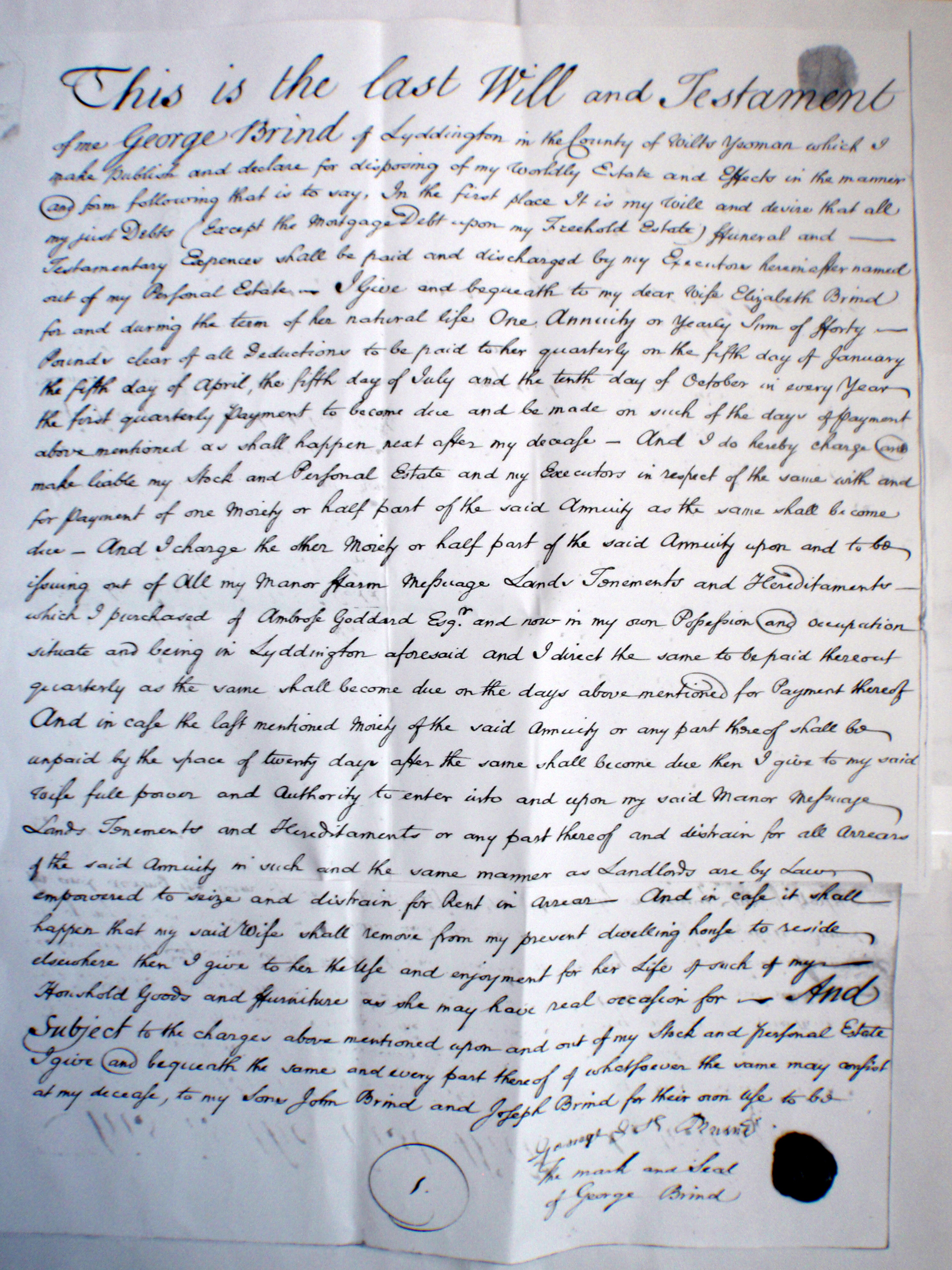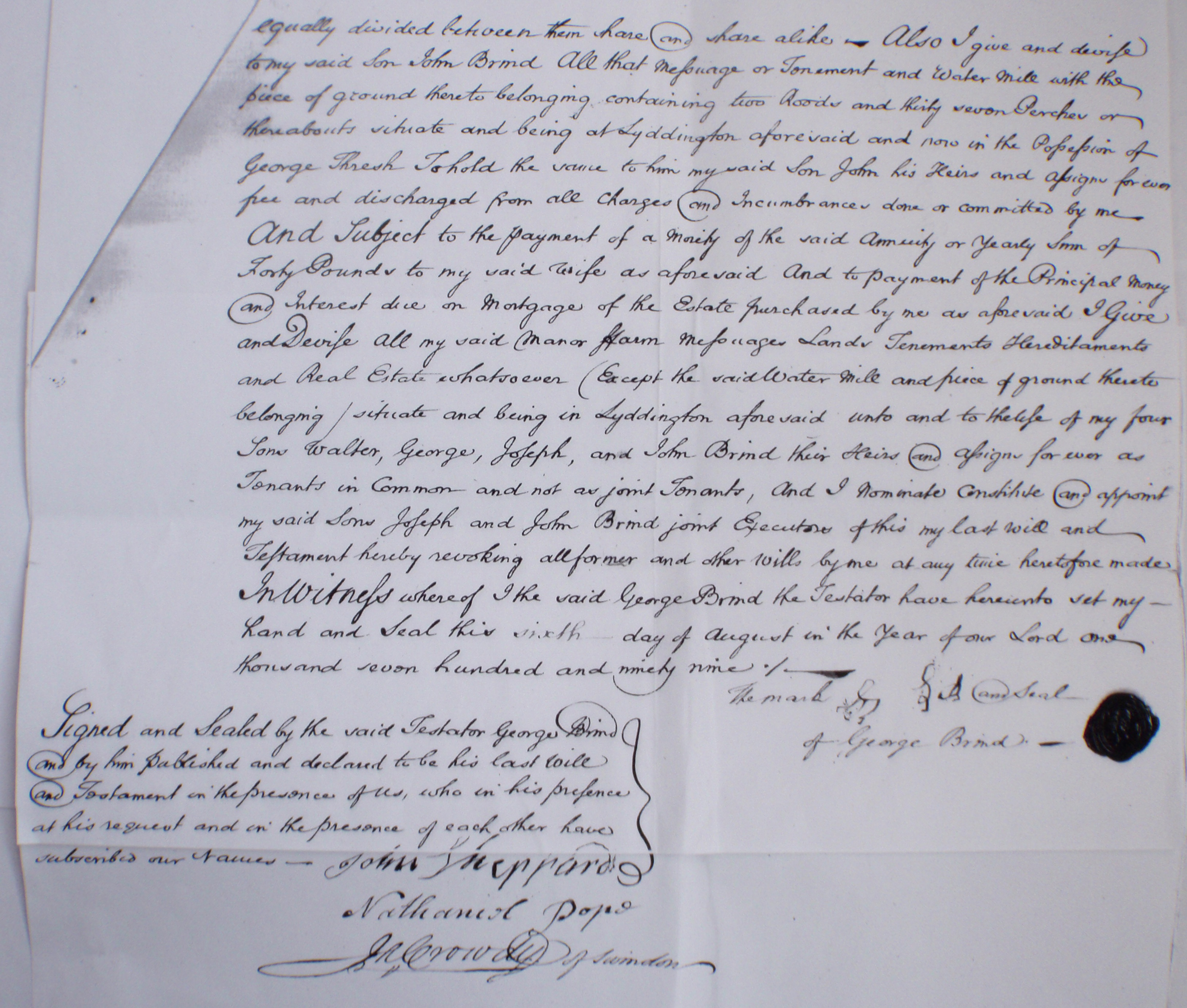 In witness wherseof I the said George Brind the testator have hereunto set my