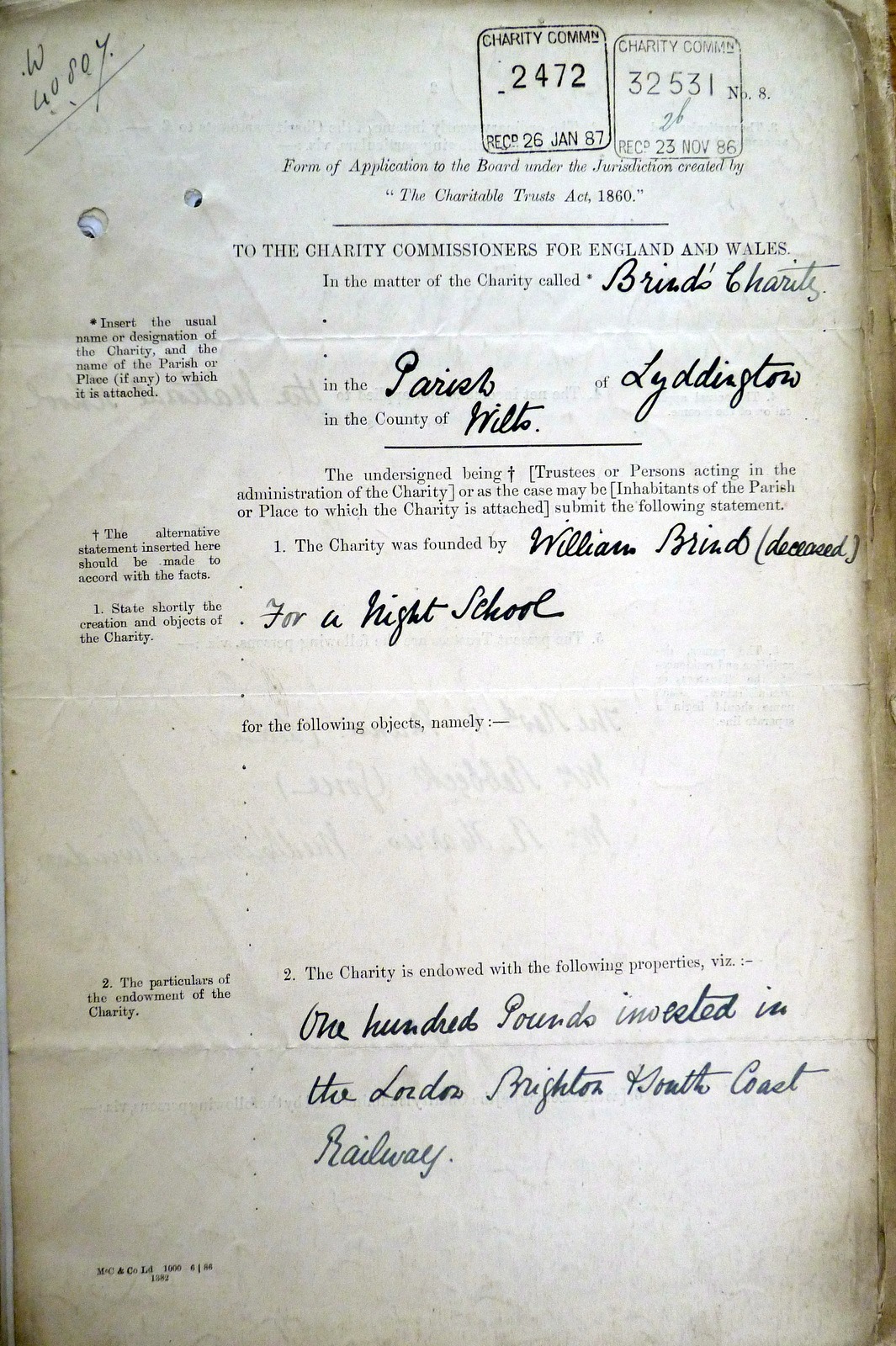 | William and Mary seem to have been brother and sister. Although they lived in Liddington they do not seem to be on the Liddington Church Memorial and William was born in Southwick or Southampton. It seems that William set up a Brind Charity that funded a night school. He seems to have had some money invested in the London Brighton South Coast Railway. It took about ten years after this William Brind died before the Brind Charity was set up, which seems a long time. However, there are no really good alternatives. The best is probably William Brind who died in 1880 in Marlborough. | ||