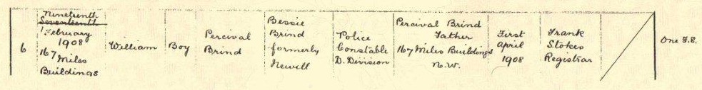 Police Constable D Division | Percival Brind father 167 Miles Buildings NW |