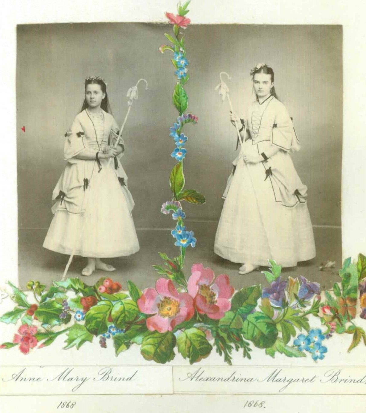 ![]() Two girls dressed as shepherdesses. Daughters of Brigadier Frederic Brind.: Anne Mary (left) and Alexandrina Margaret) dressed as shepherdesses. |