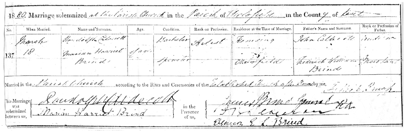 Marian Harriet Brind of age Spinster   Chelsfield Frederick William Brind Merchant