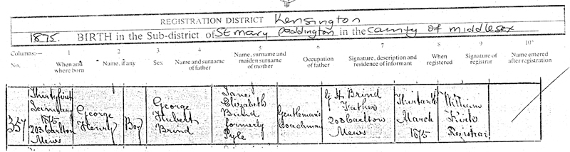 | Registration district of Kensington 1875 BIRTH in the sub-district of St Mary Paddington in the County of Middlesex |