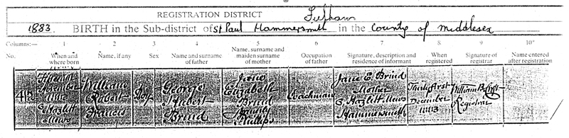 | Registration district of Fulham 1883 BIRTH in the sub-district of St Paul Hammersmith in the County of Middlesex |