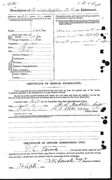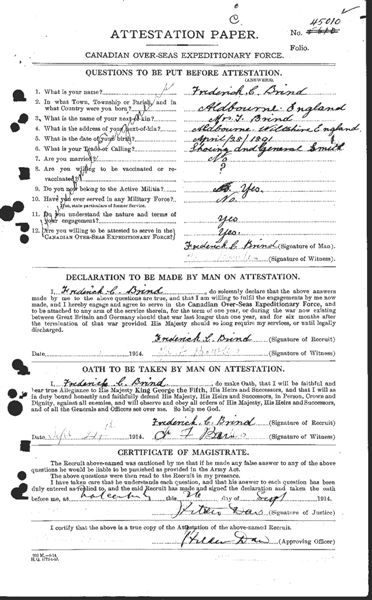 | A Frederick C Brind born in 1891 enlisted in Canada |