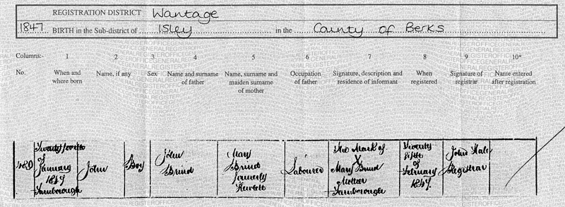 | Registration district WANTAGE 1847 BIRTH in the sub-district of Isley in the County of Berks |