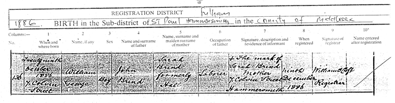 | Registration district of Fulham 1886 BIRTH in the sub-district of St Paul Hammersmith in the County of Middlesex |