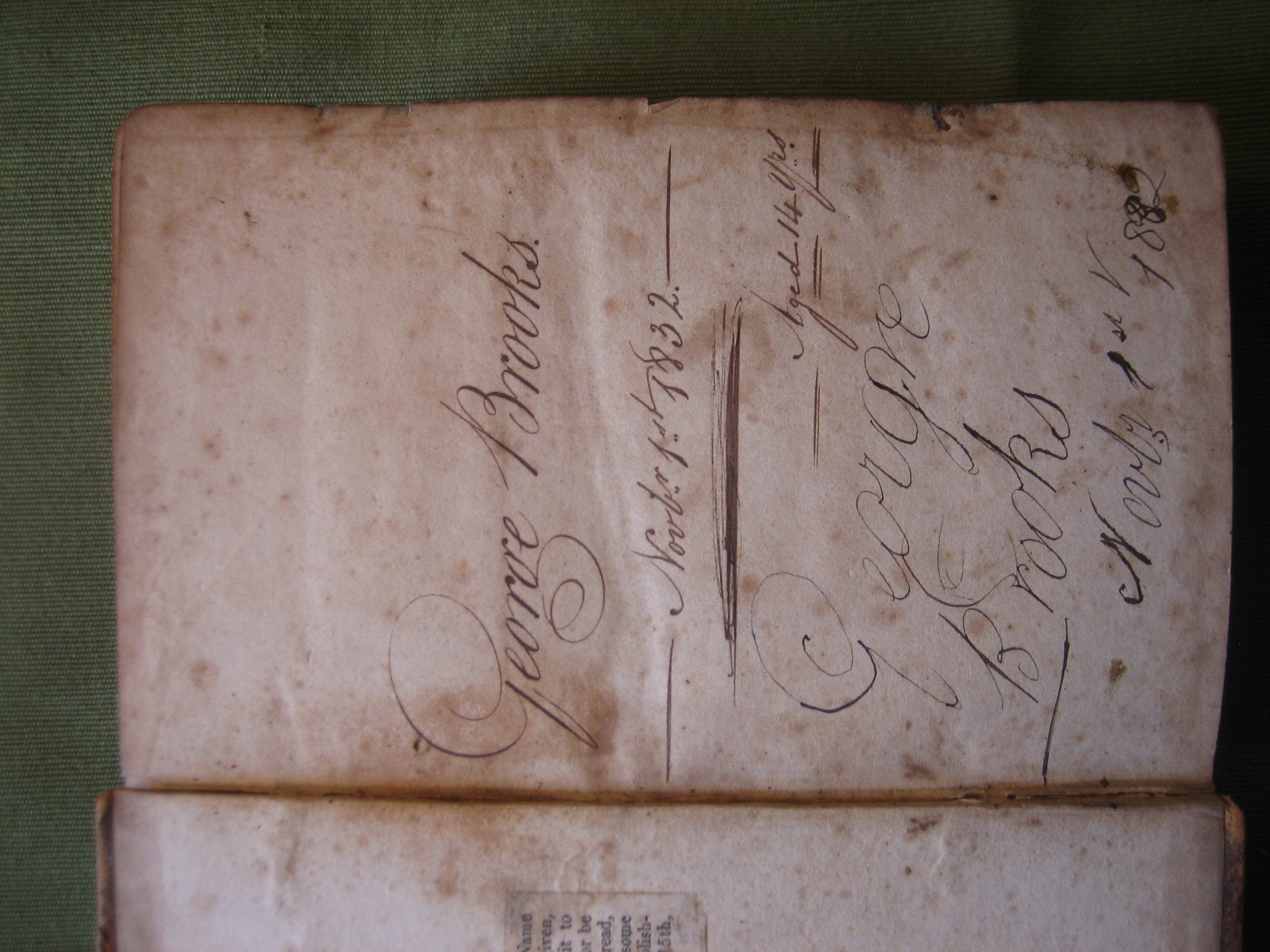 | I attach photos of the inscriptions on the first free endpaper and the inside of the back cover. In deference to privacy concerns of my immediate family I have covered over relatively recent details added by my own father. What I know of Henrietta Brooks is as follows (you will probably know much or all of this already). Her parents were George Brooks and Elizabeth Kensall who married on 6 September 1838. Henrietta appears to have been their third daughter and was born in Poplar of 3rd Feb 1844. Her first husband was Richard Brind whom she married in September 1866, in Poplar. So far as I know Richard Brind died in Poplar in June 1867; perhaps you can confirm this?). | |