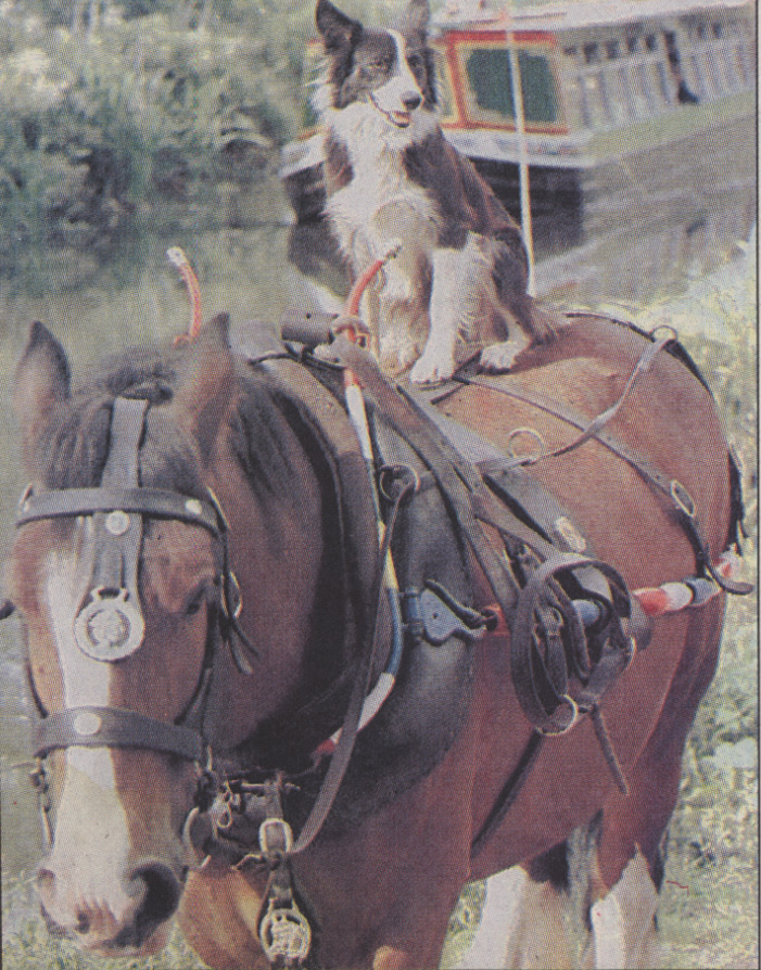 A horse-riding dog returned to the saddle at the weekend after a five hour operation on her broken leg which left her owners with a £500 bill. Jessie, a collie, was given a bone graft and had the leg wired and pinned after jumping off a vehicle and landing awkwardly three months ago. She had become a familiar sight riding on the back of the horse Jim as he pulled a tourist barge along the Grand Western canal in Tiverton, Devon. Jessie's owners, Ray and Pat Brind, of the Grand Western Horseboat Company, said it was feared she would lose her leg after the accident. "Our thoughts were for Jess and how we could do the best for her. We would have been devastated to lose her," said Mrs Brind. "She has a limp, but that should improve when the wire is removed." Daily Telegraph, Monday May 26, 1997.