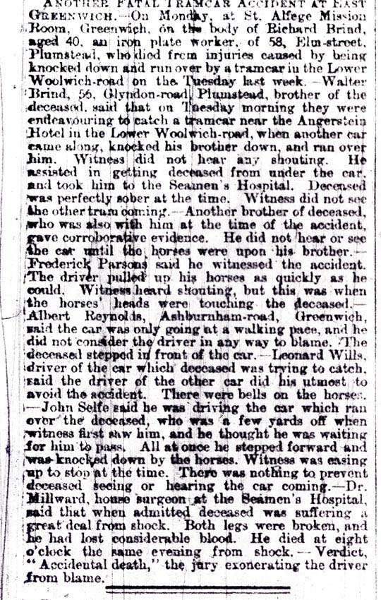 ANOTHER FATAL TRAMCAR ACCIDENT AT EAST GREENWICH | ? 1898 |