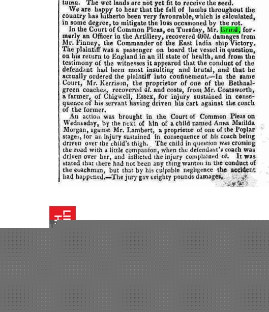 Damages from Mr Finney | Bell's Life in London and Sporting Chronicle, March 6, 1825 |