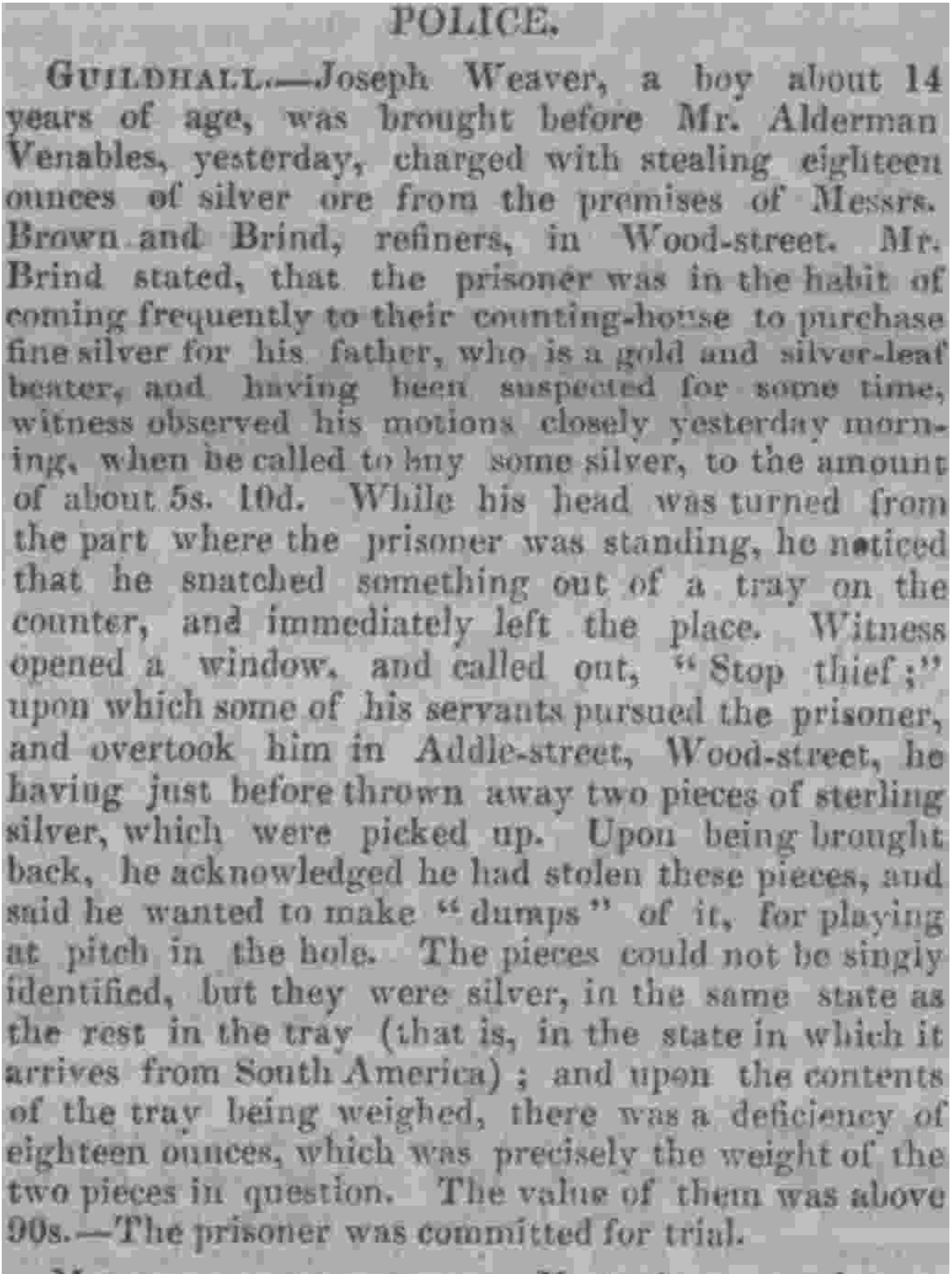 Stealing eighteen ounces of silver | 'The Standard' Thursday 19 June 1828 |