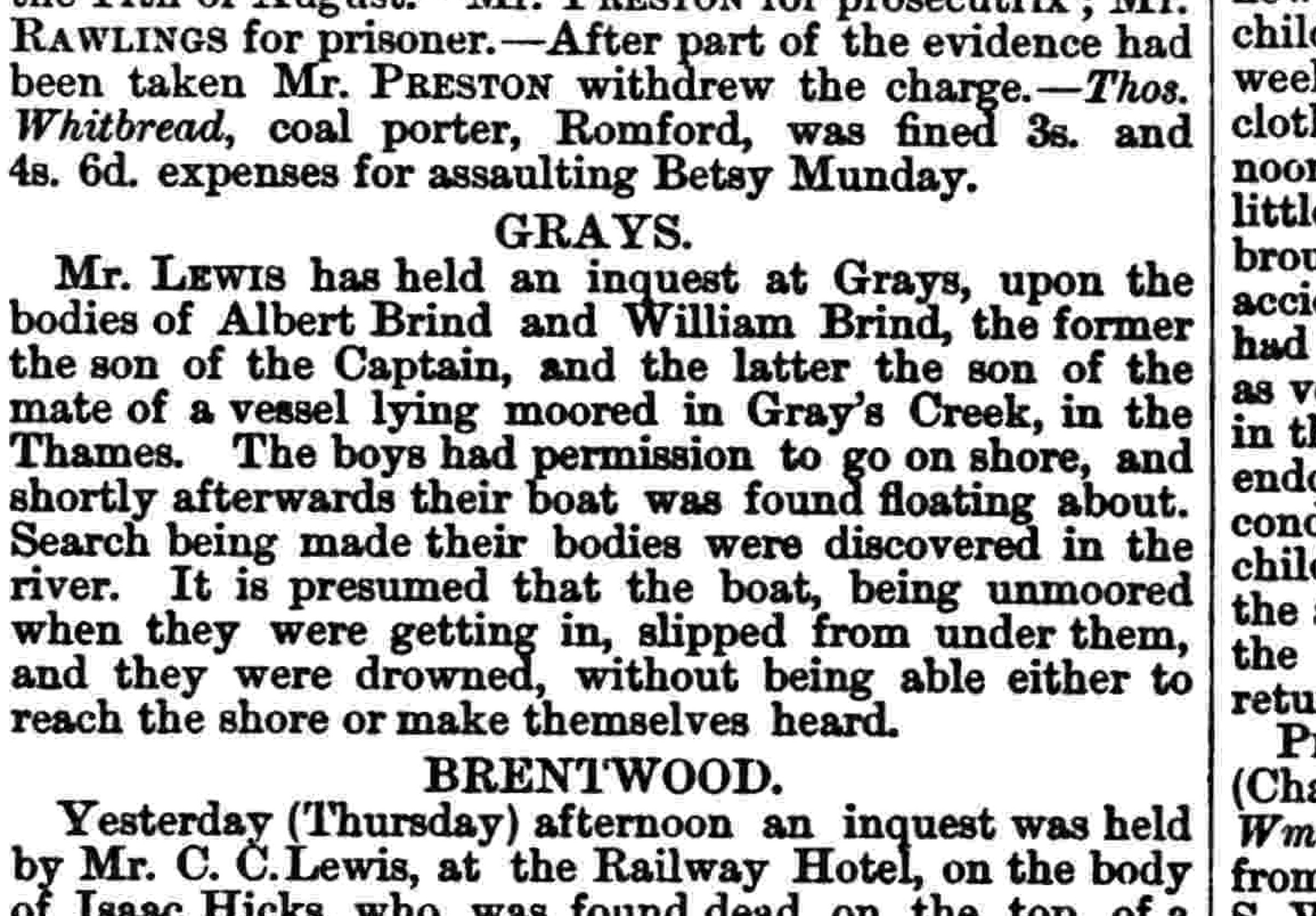 GRAYS double drowning | Essex newspaper? ????? August 1877. |