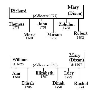 William's eldest son, William Jnr, survived at least until he was 76 years old when one of great the events of Aldbourne occurred, the great fire of 1777 (by coincidence this was the year the first really large scale map of Wiltshire was produced). By that time he was a widower living with his son Thomas's widow Ann. The fire happened on Sunday August 24 and a large part of the village was burnt down. This was not the first fire associated with the Aldbourne factory. Brinds had been forced to rebuild their homes before when there had been small fires in the early 1700s. In 1777, however, it was estimated that over £10,000 of uninsured damage was done. It was a bad year for the Brinds. Richard Brind was the recipient of parish charity (1s) that Easter and Widow Brind (Jane nee Adams?) received the very substantial sum of 5s. After the fire the rector and the Lord of the Manor immediately formed a committee to raise funds for the worst affected. A County Committee of eight, including Sir Ambrose Goddard, a local landowner, took up the fund raising effort. A London committee was also appointed with 12 people, including representatives of guilds associated with fustian. William Brind, labourer and widower (aged 76) features amongst those who had suffered. He lost his home valued at £43 16s 9d as well as stock and goods valued at £13 2s. Ann Brind the daughter in law, a spinner (spinster?), lost stock and goods worth £2 15s 9d. The various fund raising efforts produced nearly £2,000 but though the village was rebuilt it never fully recovered. George married Francis Yeomans and had two children. Both died while they were still babies. From the point of view of this story, however, the most significant son of William & Ann (Griffin) was the middle one, Thomas, a farm worker.