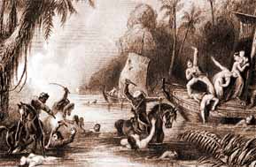 Nana Sahib sent some elephants and palanquins to assist the British in their ignominious withdrawal. They were followed by a crowd of sepoys and the ubiquitous sightseers that attend any event in India. At the ghat, the steps leading down to the water where Hindus take their ritual baths, a fleet of country boats awaited. Painfully the British loaded the women, children and wounded into the wooden craft. The last man aboard was a Major Vibart, helped up solicitously by the sepoys formely under his command. Barely had his feet touched the deck when things started to go wrong. The Indian boatmen, instead of pushing-off, jumped overboard and made for the shore. The British opened fire on them. Perhaps it was all a terrible mistake, but from prepared positions on the riverbanks the sepoys showered the boats with a storm of grapeshot and musketry. Women screamed, the boats caught fire, the river turned red and corpses floated downstream. Indian cavalry troopers rode into the shallows and slashed at the wounded with their sabres. Only one boat managed to extricate itself and carrying a few survivors drifted away. Days later, after a nightmarish journey, they came across a British outpost upstream from Allahabad and the only four men to escape from Cawnpore found safety.