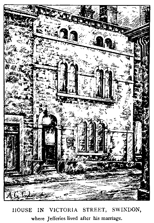 In a handy little Tourist's Guide to Wiltshire, Mr. R. N. Worth says: "Wiltshire needs not to be ashamed of its worthies," and gives a list of honoured names; but the name of Richard Jefferies is not on his list. "save in his own country, and in his own house." The spell of Jefferies Land must be sought in his later books: Wild Life in a Southern County, Wood Magic, Round About a Great Estate, etc., etc.; or, better still, it may be sought and found on a summer's day by any wayfarer on the Downs who possesses a seeing heart and eye. But, in his early days, Jefferies could find no utterance for the vision which came to him, and yet, even then, in his crudest and most unformed period, he was loyal to his country, and desired to do it honour. His History of Swindon and its Environs was written in the days when he worked for the North Wilts Herald, in which the last pages appeared in June, 1867, when he had but a boy's second-hand acquaintance with the facts and traditions he collected so laboriously, "I visit every place I have to refer to, copy inscriptions, listen to legends, examine antiquities, measure this, estimate that; and a thousand other employments essential to a correct account take up my time. . . . To give an instance. There is a book published some twenty years ago founded on a local legend. This I wanted, and have actually been to ten different houses in search of it; that is, have had a good fifty miles' walk, and as yet all in vain. However, I think I am on the right scent now, and believe I shall get it." There was no sparing of time and labour in this early work of his. Let this be remembered before it receives harsh judgment.