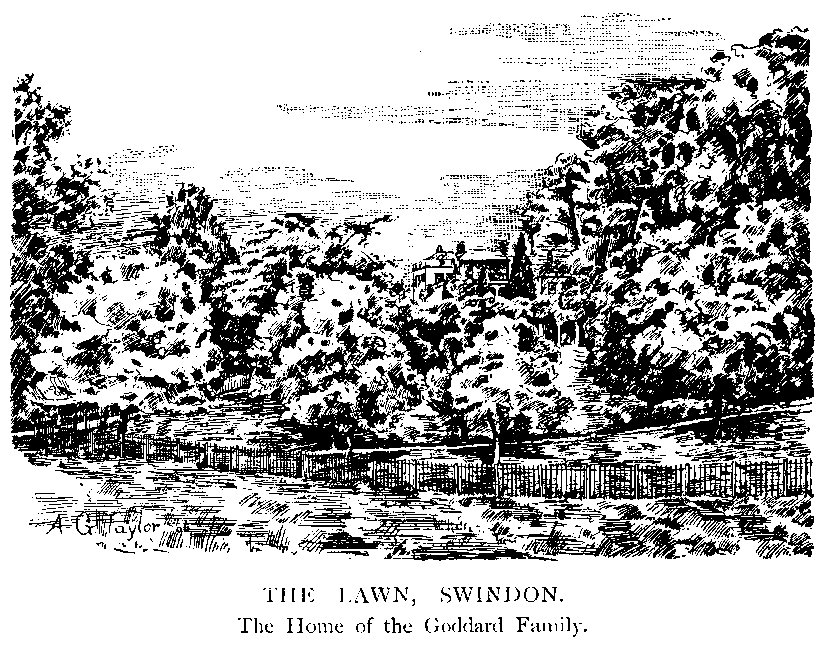 She was known as Mary de St. Paul, Countess of Pembroke, and her memory has been perpetuated in consequence of her having founded Pembroke Hall, Cambridge. Aylmer de Valence having died without issue, part of the estate fell to the daughter of his sister, Elizabeth Comyn. She married Richard, second baron Talbot of Goderich Castle, who thus became owner of this part of Swindon. The Talbots were a celebrated family. Shakespeare has immortalised the name in one of his historical dramas. Later, in 1473, it belonged to John, Earl of Shrewsbury. At this date the manor was held under what was known as the Honor of Pont'large.1 At length, in the year 1560, the estate was purchased by Thomas Goddard, Esq., of Upham, ancestor of the present owner, A. L. Goddard, Esq.