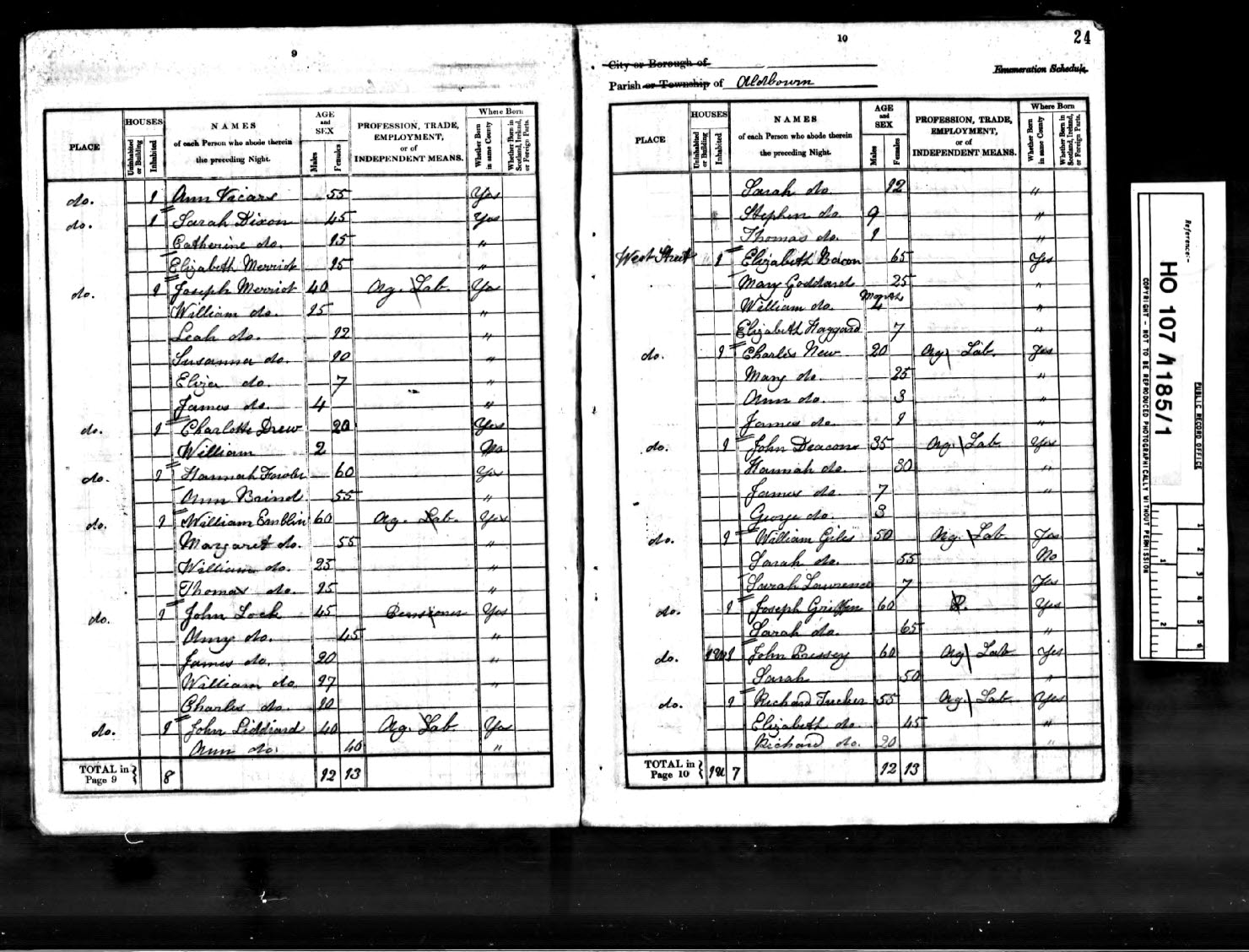 Aldbourn, Lavington, Wiltshire (Selkey)> HO107/1185/1