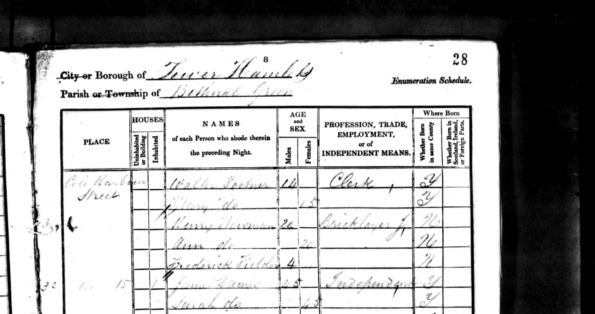 Bethnal Green, Ossulstone (Tower Division), Middlesex > HO107/693/6