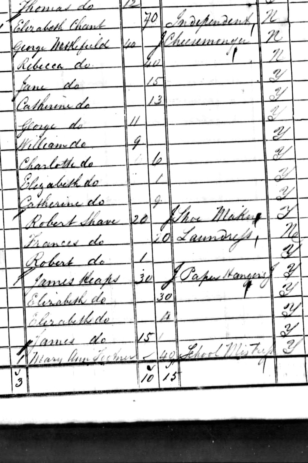 | Frances Shave | 20 | Middlesex, England | Middlesex, England | Laundress |