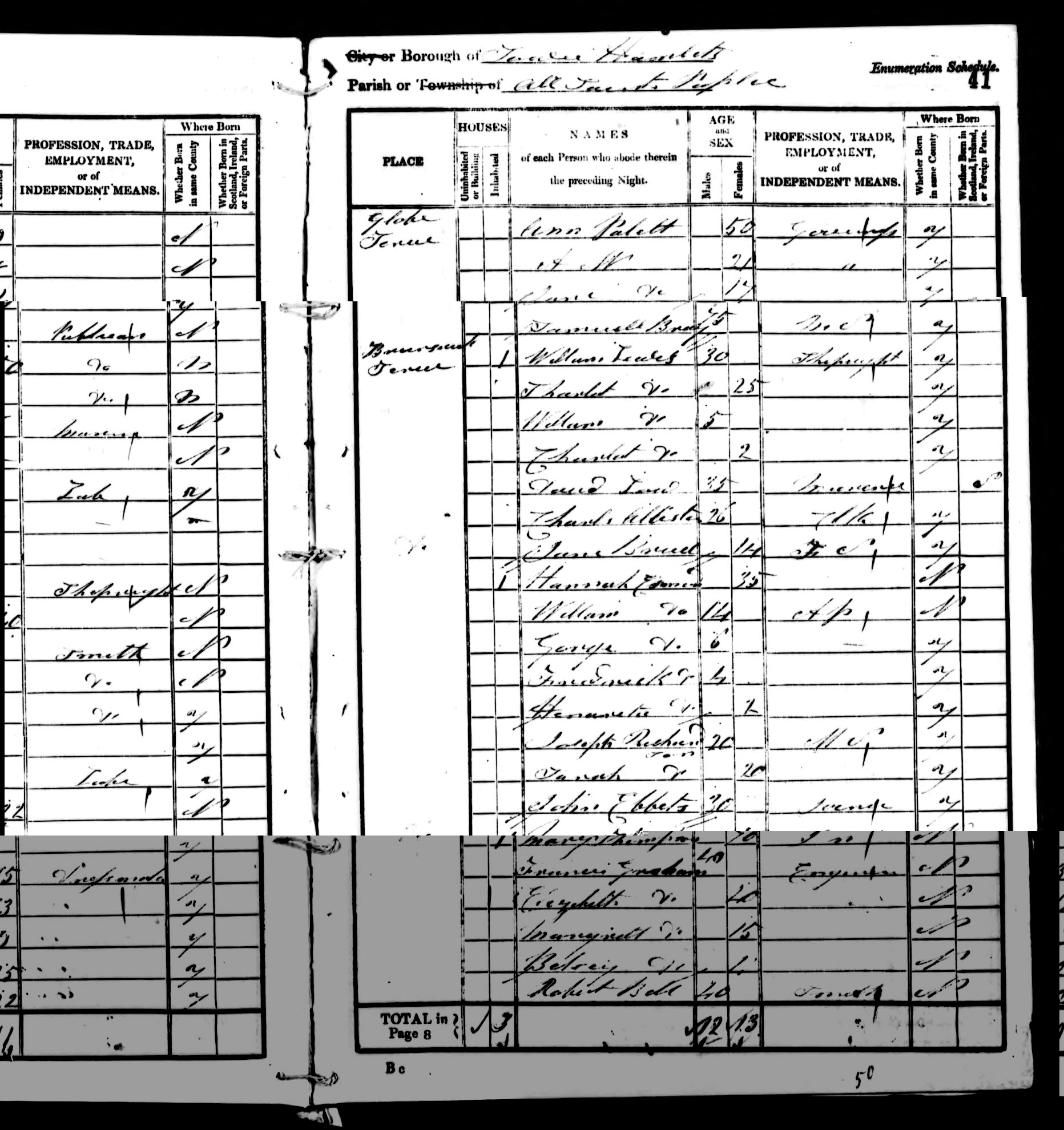 | Jane Brind | abt 1827 | Brunswick Terrace | Middlesex, England | female servant |