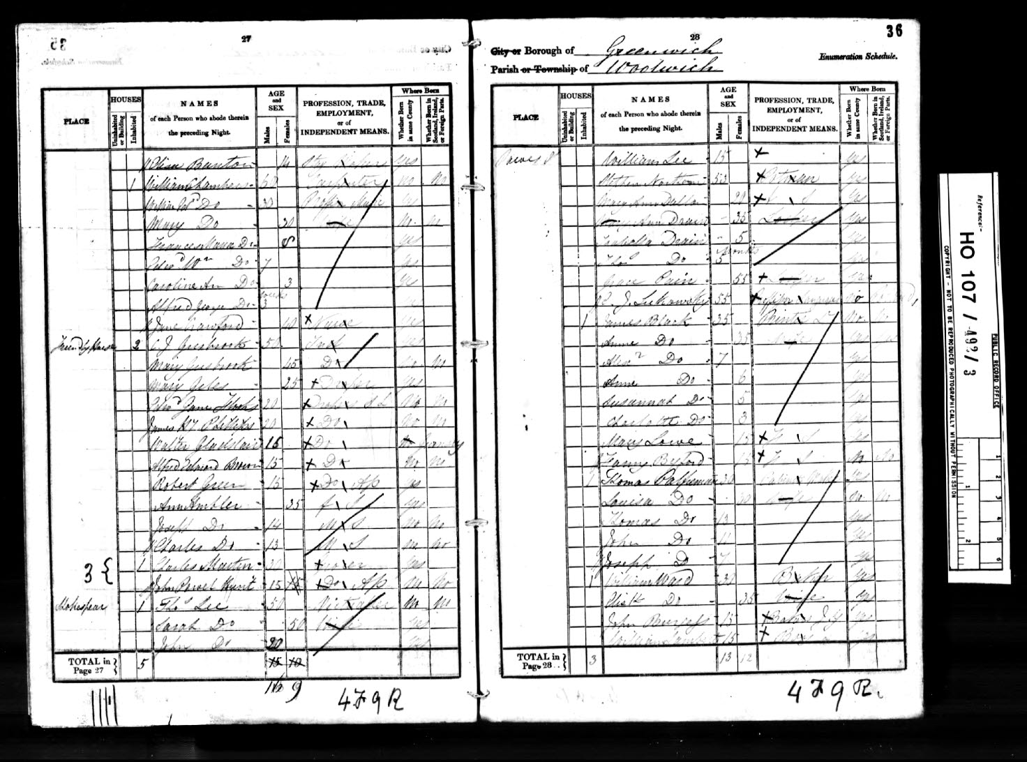 Charlton next Woolwich, Greenwich, Woolwich Arsenal (Blackheath), Kent> HO107/492/3