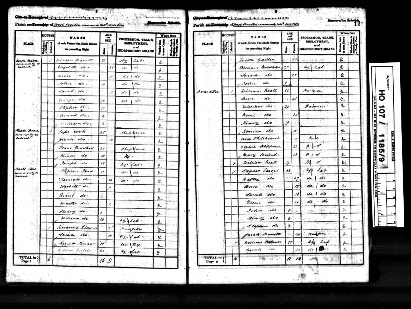 Overton, Marlborough, Wiltshire (Selkey) >HO107/1185/9