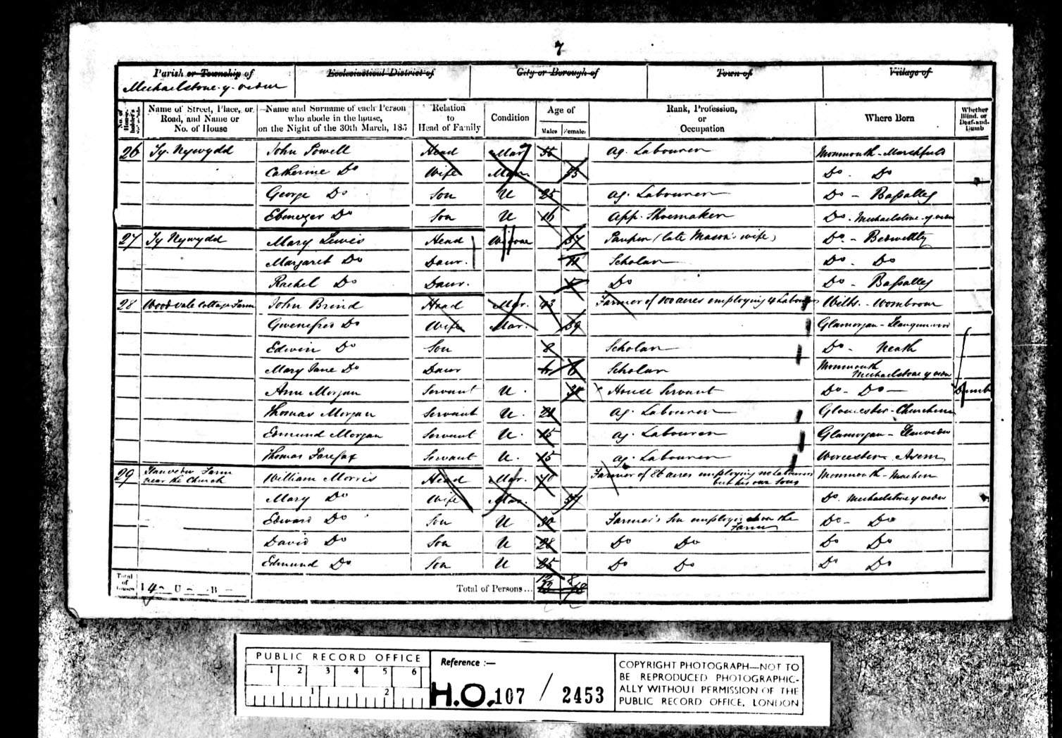 | Anne Morgan | servant | U | 31 | House Servant | Michaelstone Y Vedw, Monmouth |