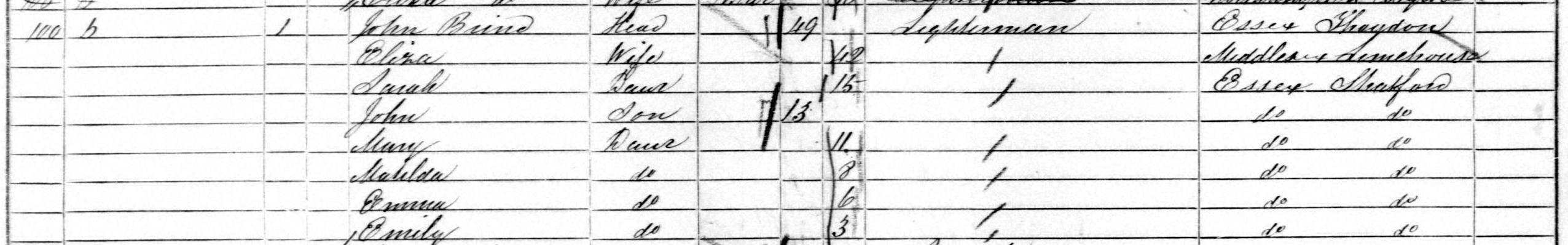| John Brind | Head | 49 | Lighterman | Thoydon, Essex | |