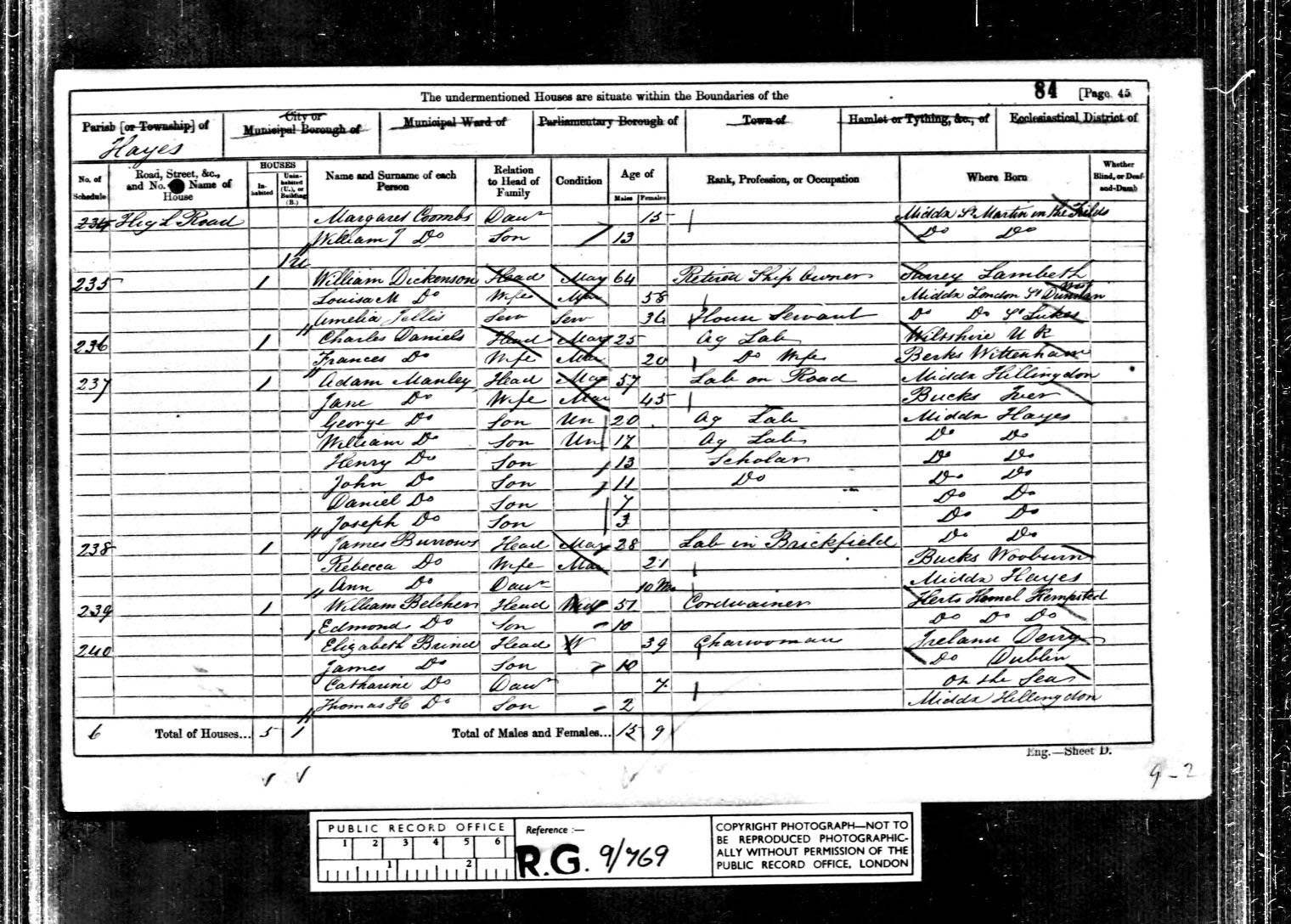 Source Citation: 1861 census, Class: RG9; Piece: 769; Folio: 84; Page: 45; GSU roll: 542698.