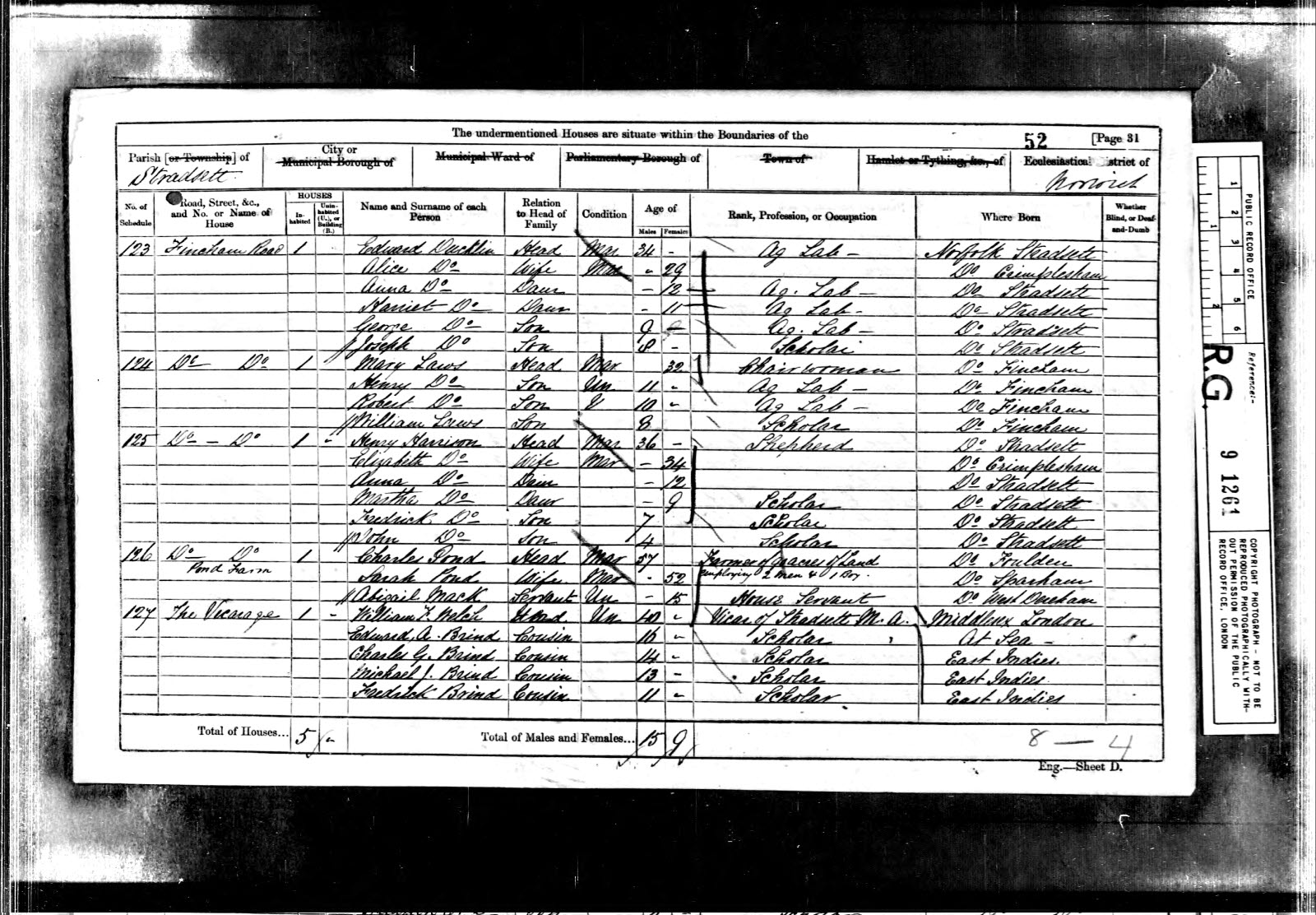 | William F Welch | Head | Un | 40 | Vicar of Stradsett M.A. | Middlesex, London |