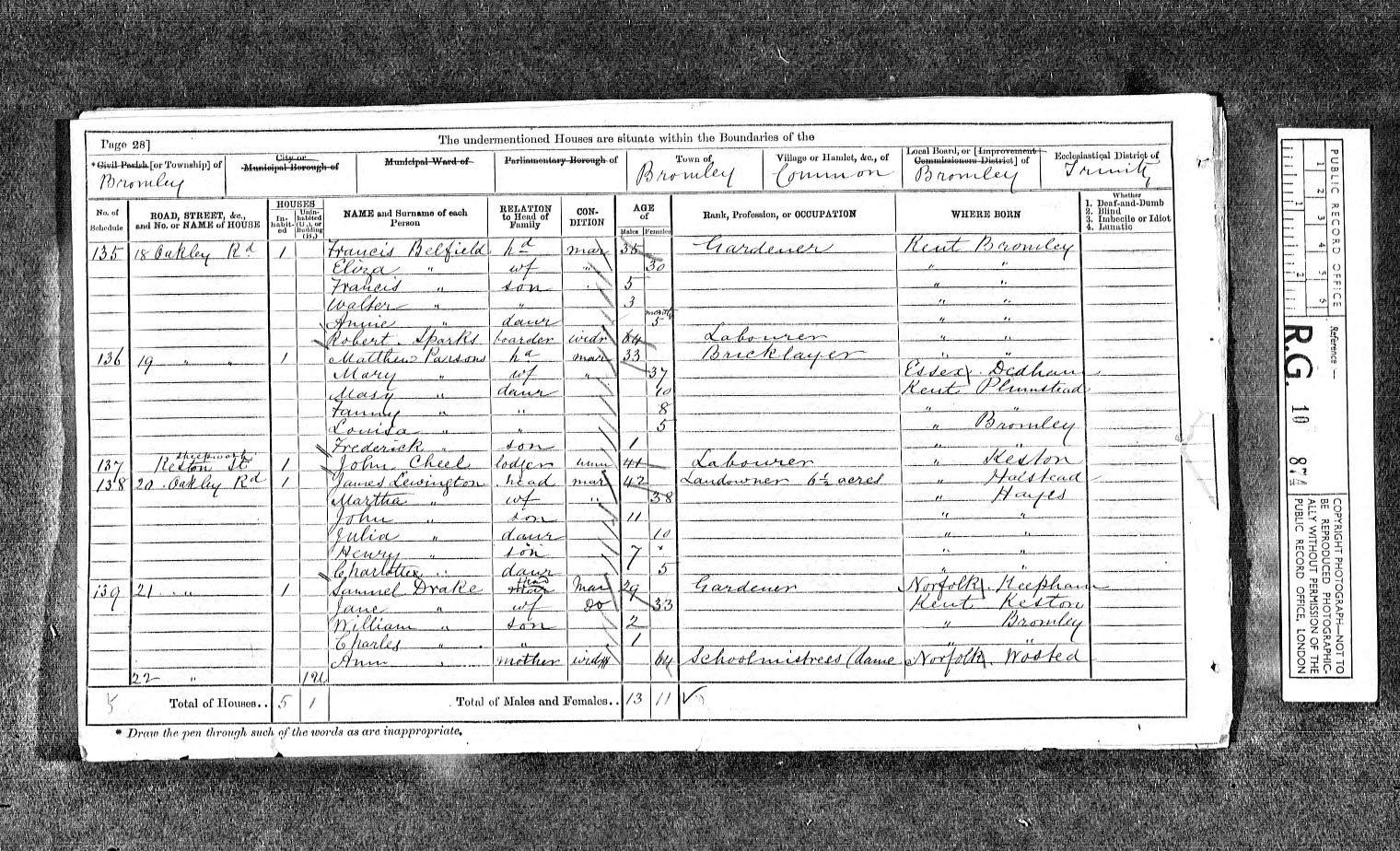 | Frederick Parsons | son | - | 1 | Bromley, Kent | |