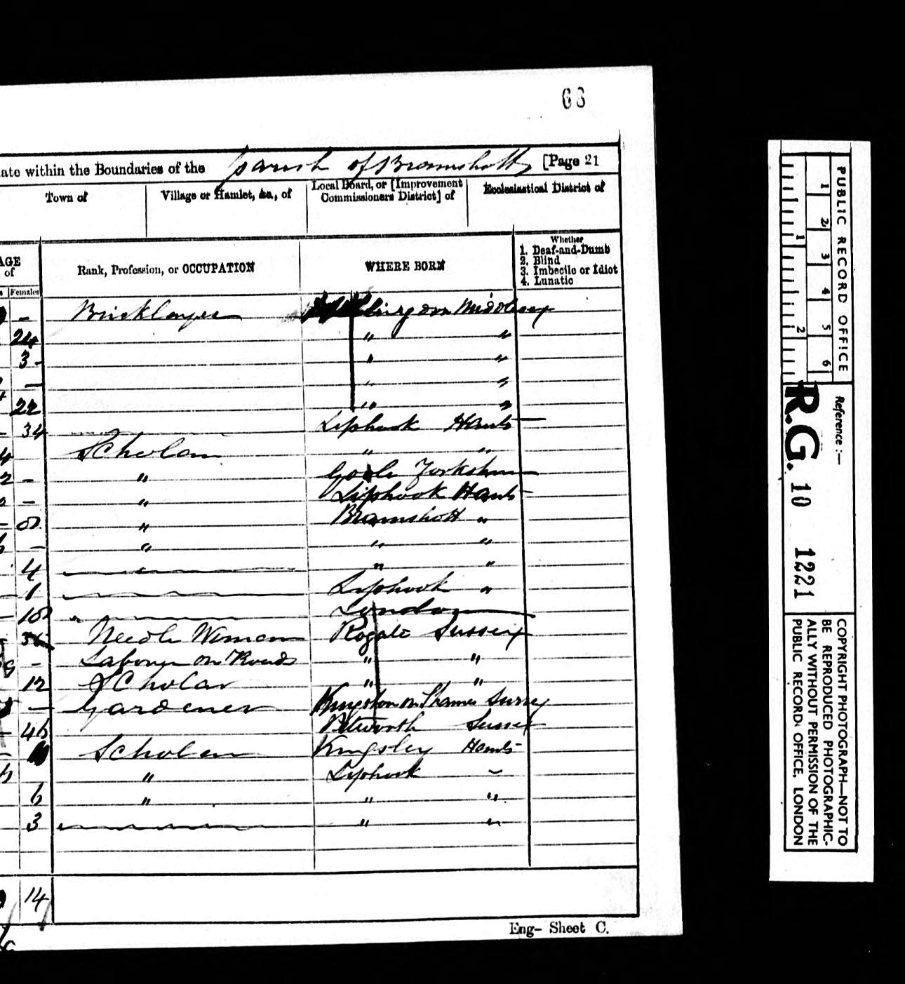 | George Brind | Lodger | Marr | 44 | Hillingddon, Middx? | |