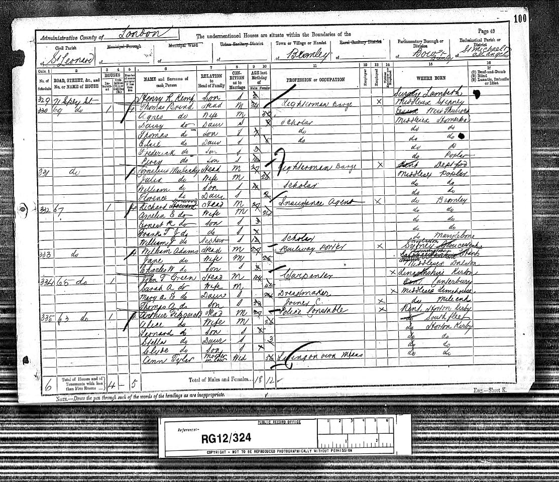 | Percy Brind | 10m | Son | Homerton, Middlesex |