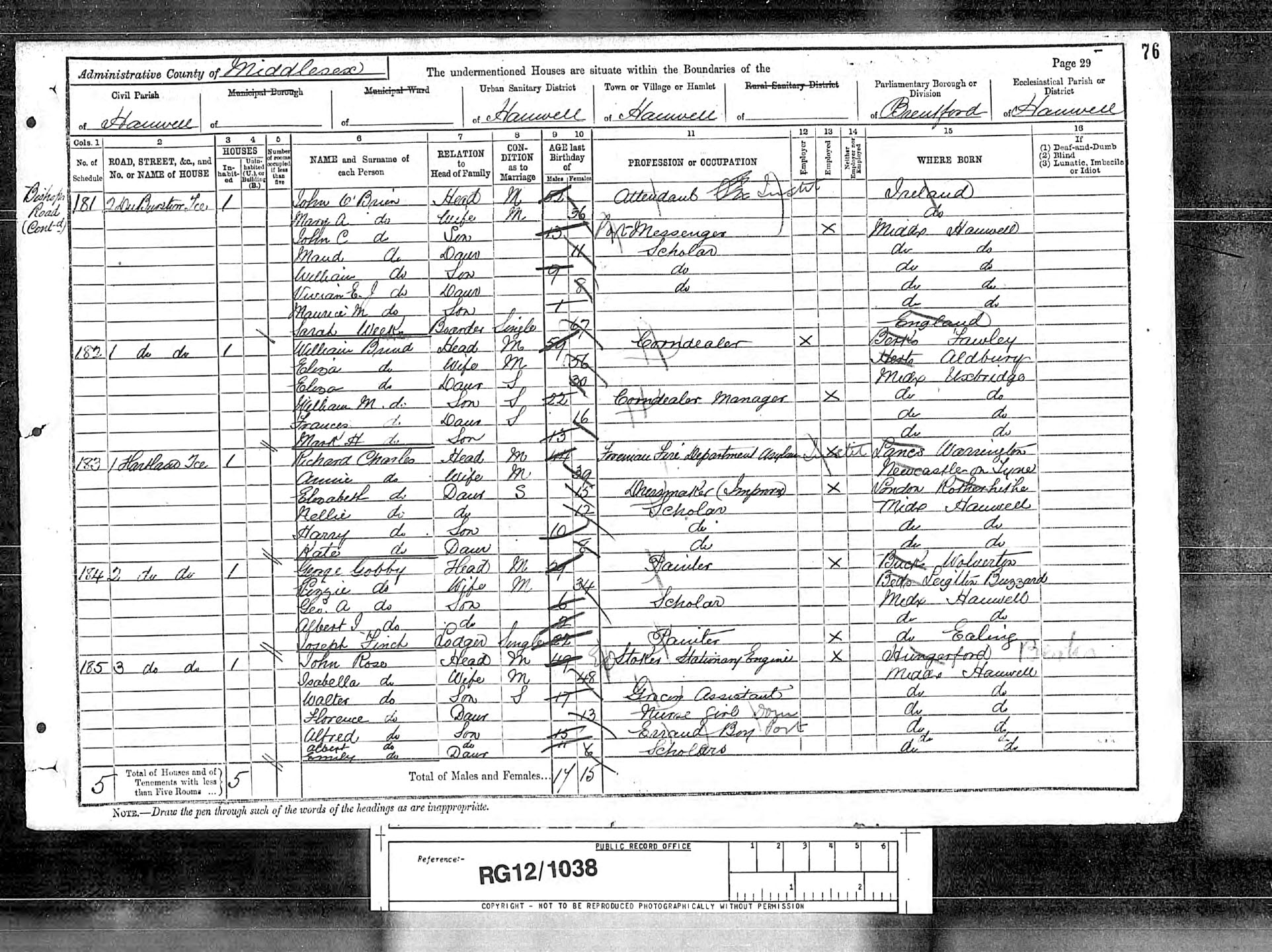 | Eliza Brind | 30 | Dau | S | Uxbridge, Middx | |
