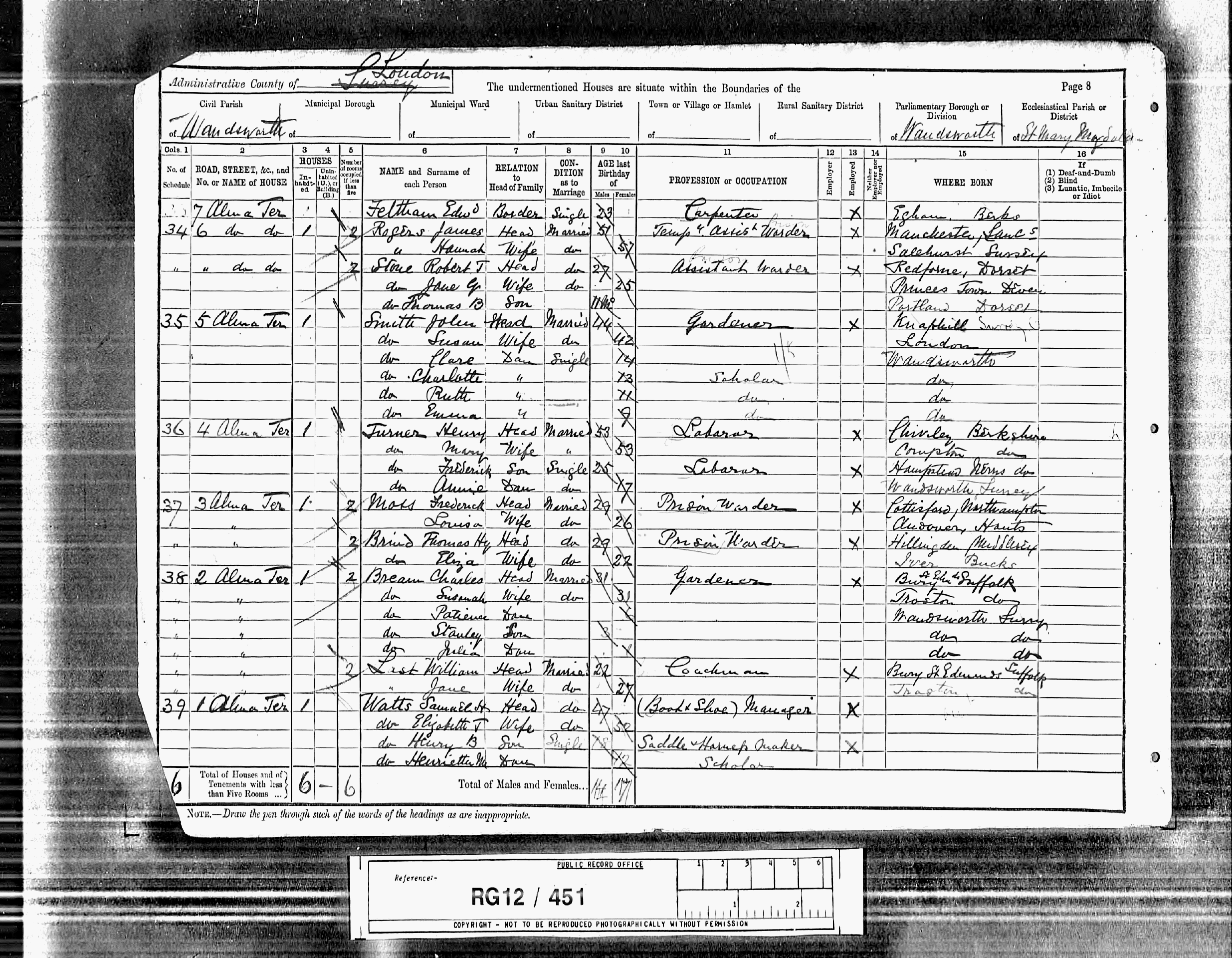 | Thomas Hy Brind | 29 | Head | Marr | Prison warder | Hillingdon, Middlesex |