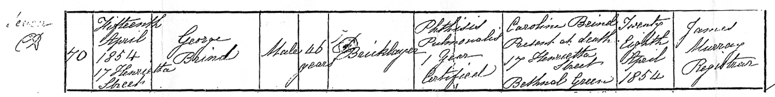 Caroline Brind Present at Death 17 Henrietta Street Bethnal Green |