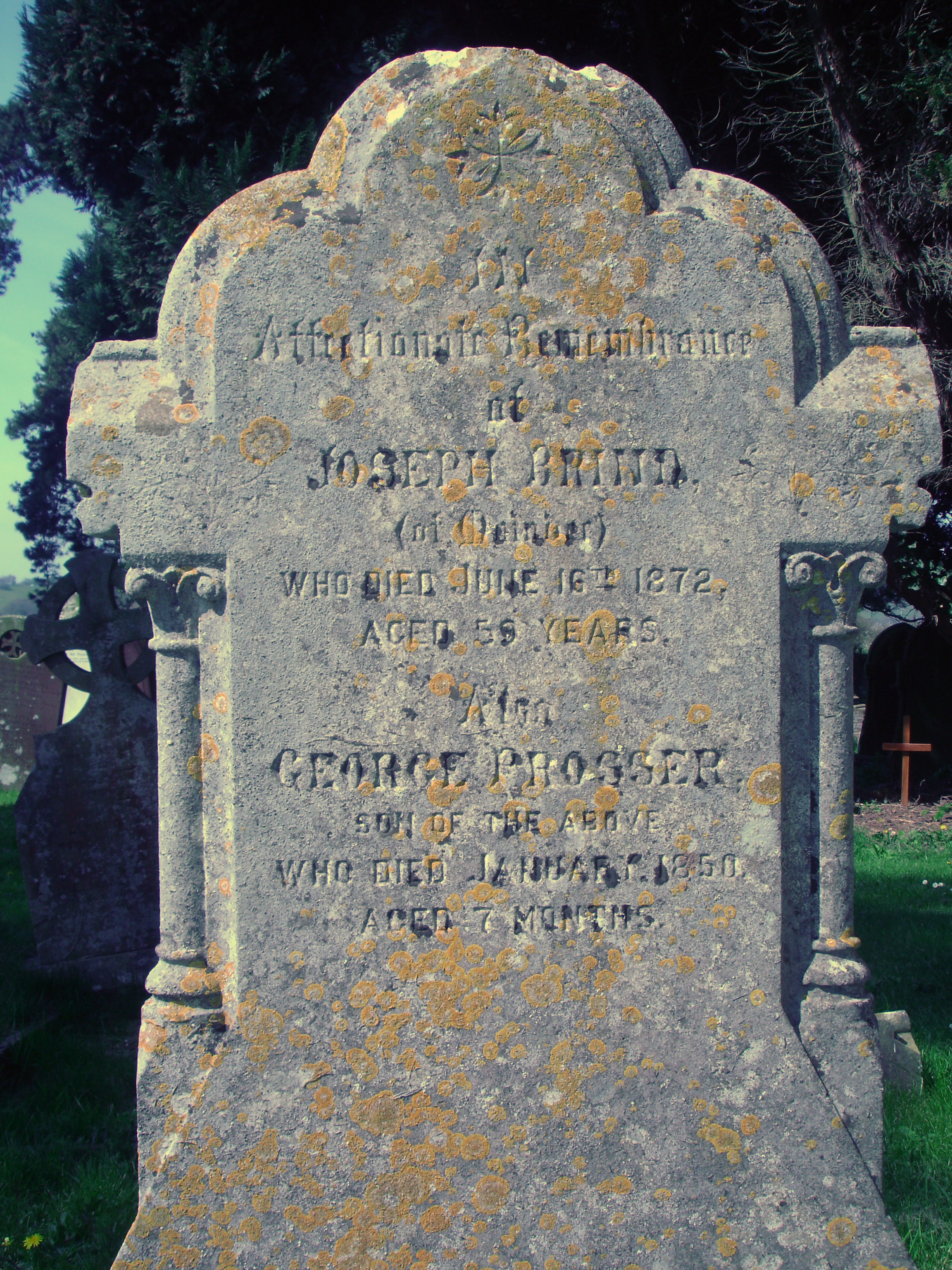 (of Muinuer) who died June 16th 1872 aged 59 years also George Prosser son of the above who died January 1850 aged 7 months.
