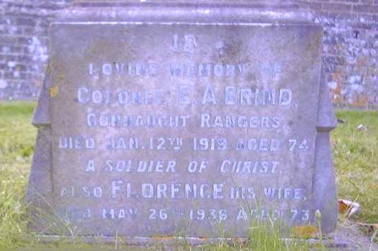 | In loving memory Colonel E A Brind Connaught Rangers Died Jan 12th 1919 aged 74 A soldier of Christ Also Florence his wife Died May 26 1936 aged 73 | |
