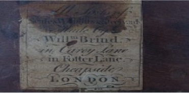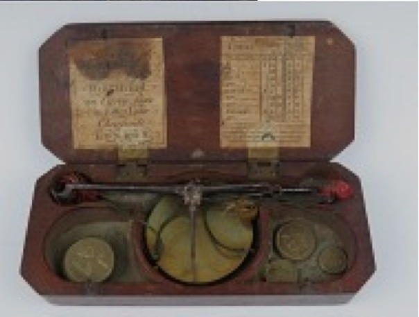 William Brind A fine English coin scale, c.1751-1774, within a cut from solid mahogany case, the top incised with two hearts, the interior lid with applied printed labels, inscribed 'Made by Willm Brind, in Carey Lane, in Foster Lane, Cheapside, London' and weight label, with five matching coin weights. Portuguese piece, moidore, ½ and ¼ moidore, and 1/8 port piece, part of a long set for the eleven coins current in Britain, beam 12.7cm William Brind scale maker (working 1751-1774), trained by Samuel Read, had eight apprentices, two of whom became masters. He had two shops simultaneously (Carey Lane & Haymarket). In 1774, Brind had stolen from his shop a showcase containing seven wood boxes (of scales?) and four cocks (taps for barrels, normally made by scale makers). An undated record of 'accidental death' states that a William Brind fell down a hatchway and against some iron. Return to tree. ![]() | |