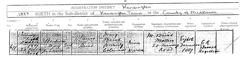 | Registration district of Kensington 1887 BIRTH in the sub-district of Kensington Town in the County of Middlesex |