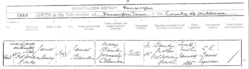 | Registration district of Kensington 1885 BIRTH in the sub-district of Kensington Town in the County of Middlesex |