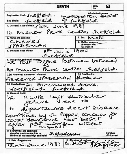 | 7 | December Twenty fourth, 1924 | Charles Spademan | 24 | Bachelor | Bolier Firer | 68 Clipstone Rd | Charles Spademan | Shunter |