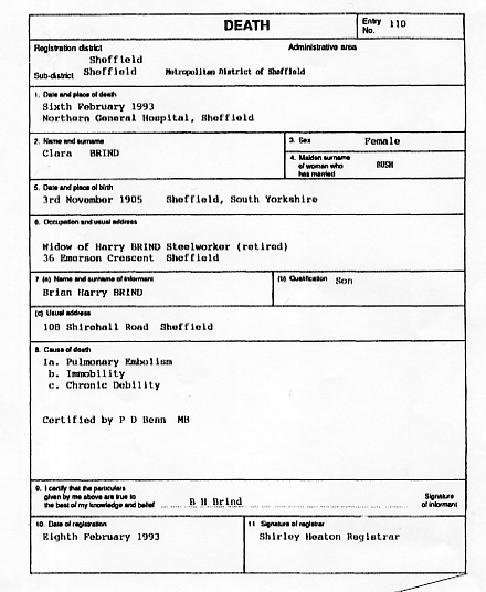 C.Brind Widow of deceased 245 Wordsworth Avenue Sheffield |