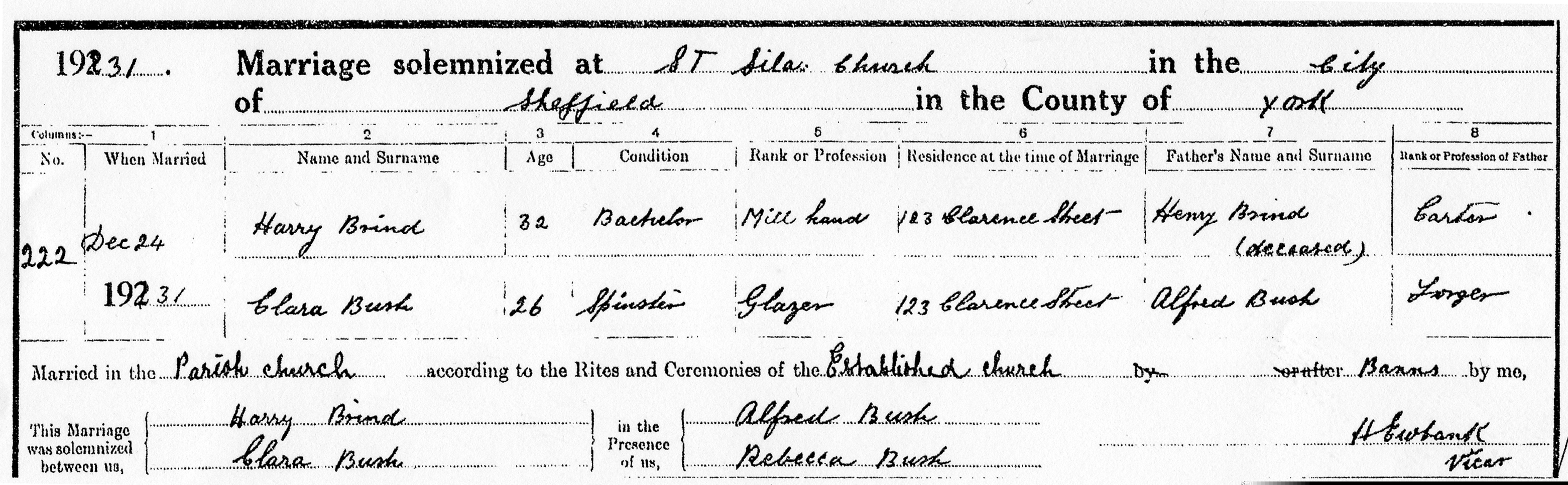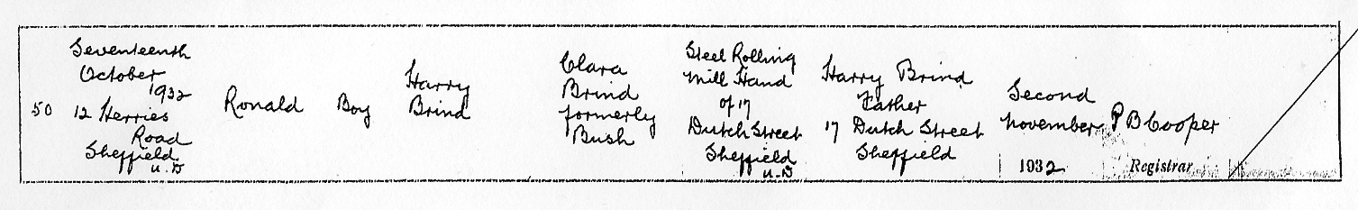Harry Brind son in attendance 245 Wordsworth Avenue, Ecclesfield |