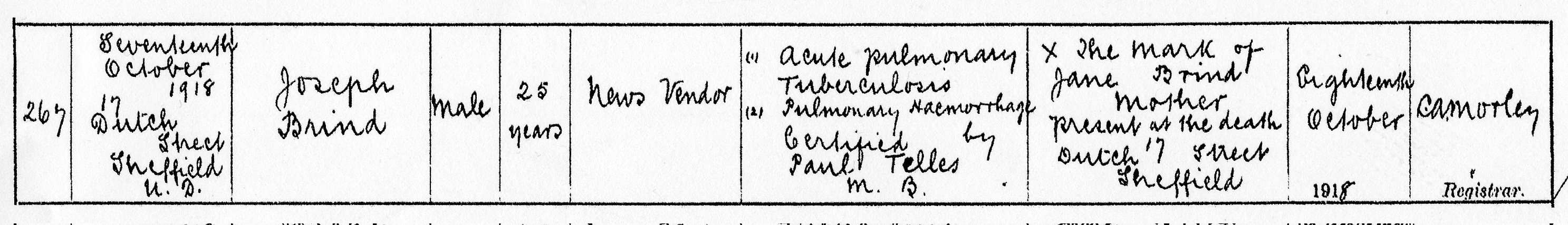 | Registration district of Sheffield 1918 DEATH in the sub-district of West Brightside in the County of Sheffield CB |